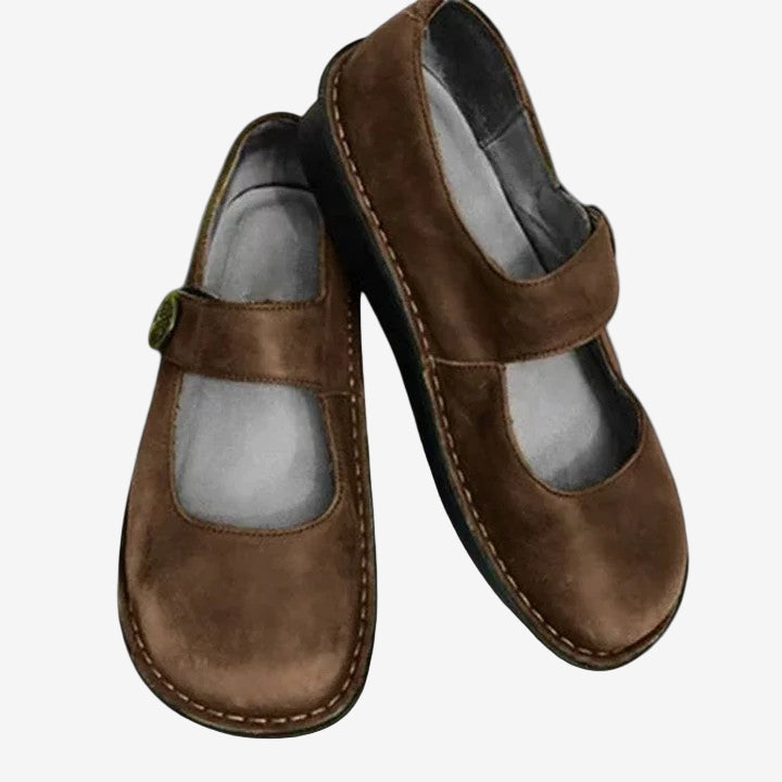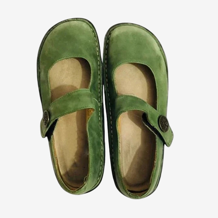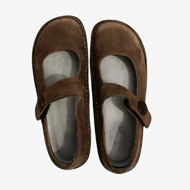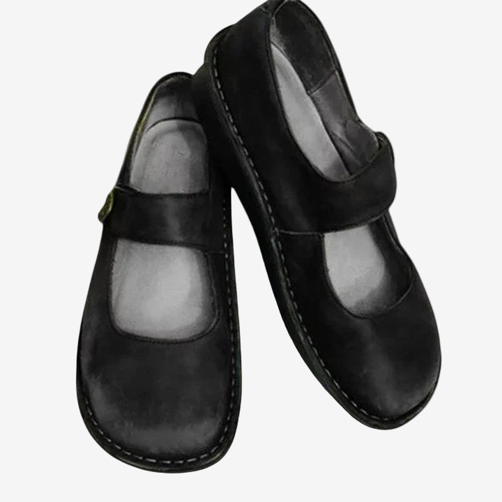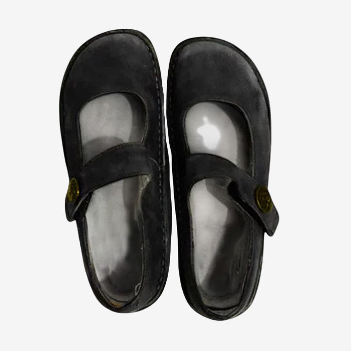Immergiti in un mix di stile senza tempo e comfort moderno con le scarpe Violetta™ Mary Jane. Queste graziose ballerine presentano una silhouette classica con punta arrotondata e un cinturino semplice ma elegante, che conferisce loro un tocco nostalgico e retrò. La suola robusta offre un leggero sostegno e garantisce comfort per tutto il giorno, mentre la finitura liscia e lucida le rende un capo versatile per ogni occasione. Che tu stia andando in ufficio o per un'uscita casual, le scarpe Violetta™ sono il modo perfetto per aggiungere un tocco di fascino vintage al tuo look.