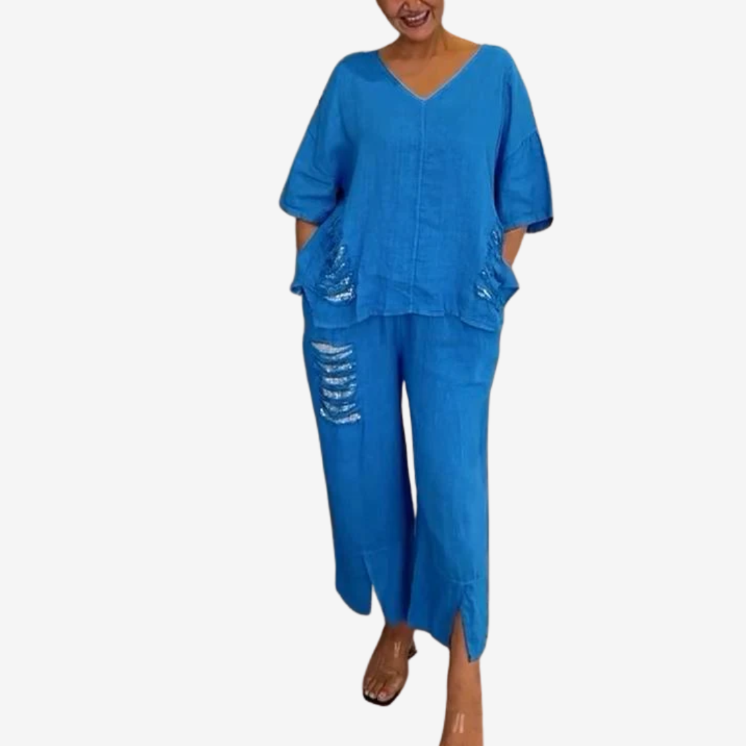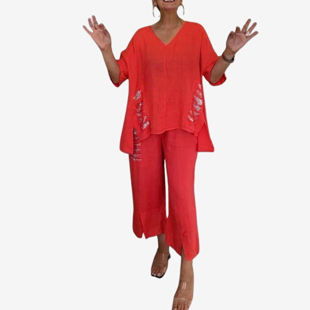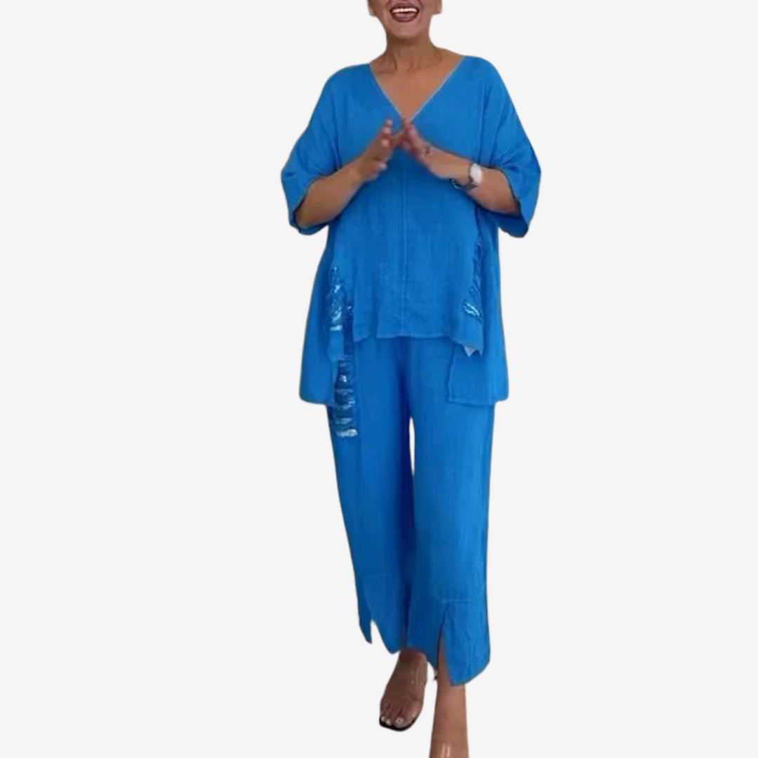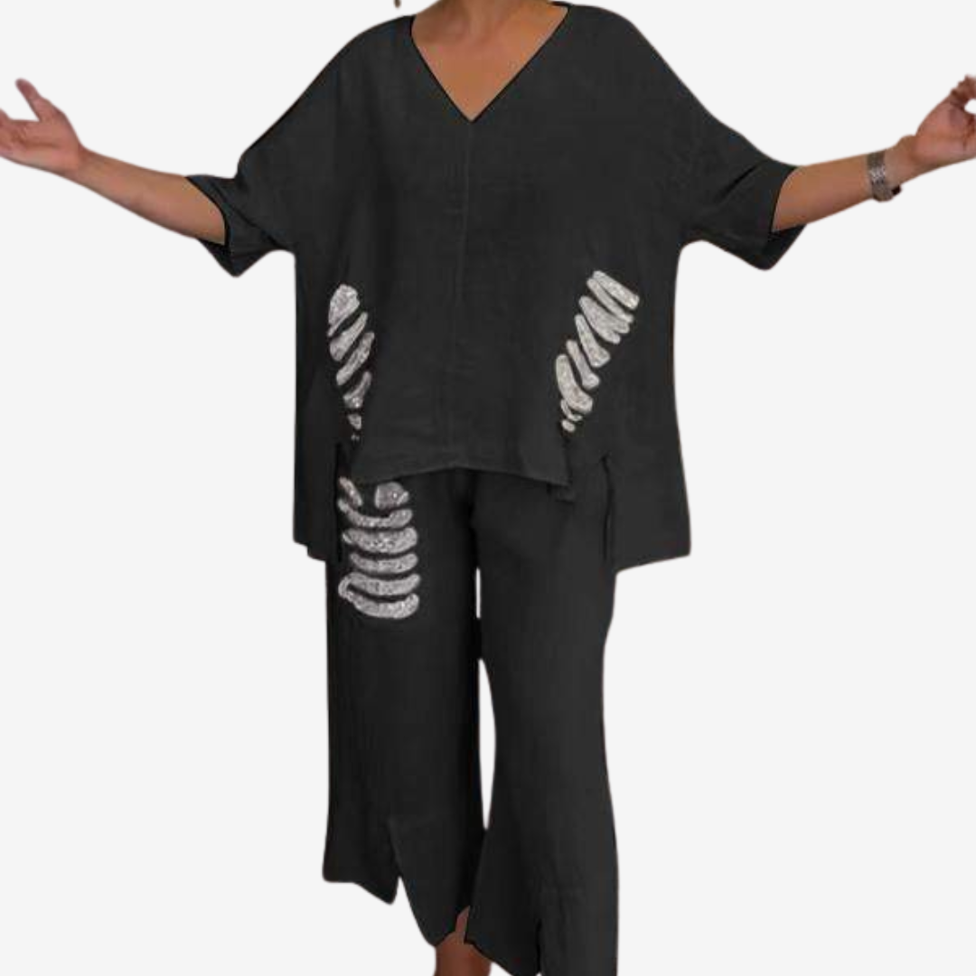 Il completo due pezzi Auroria™ è il perfetto equilibrio tra comfort e stile disinvolto. Composto da un top ampio e fluido con delicati dettagli ricamati e pantaloni a gamba larga abbinati, questo completo offre una silhouette chic adatta a ogni occasione. Che sia per rilassarsi con stile, godersi una giornata fuori o aggiungere un tocco rilassato alle serate, il suo tessuto traspirante e il taglio aderente lo rendono un capo essenziale del guardaroba. Disponibile in una gamma di colori vivaci e neutri, Auroria™ si adatta al tuo umore e ai tuoi programmi.