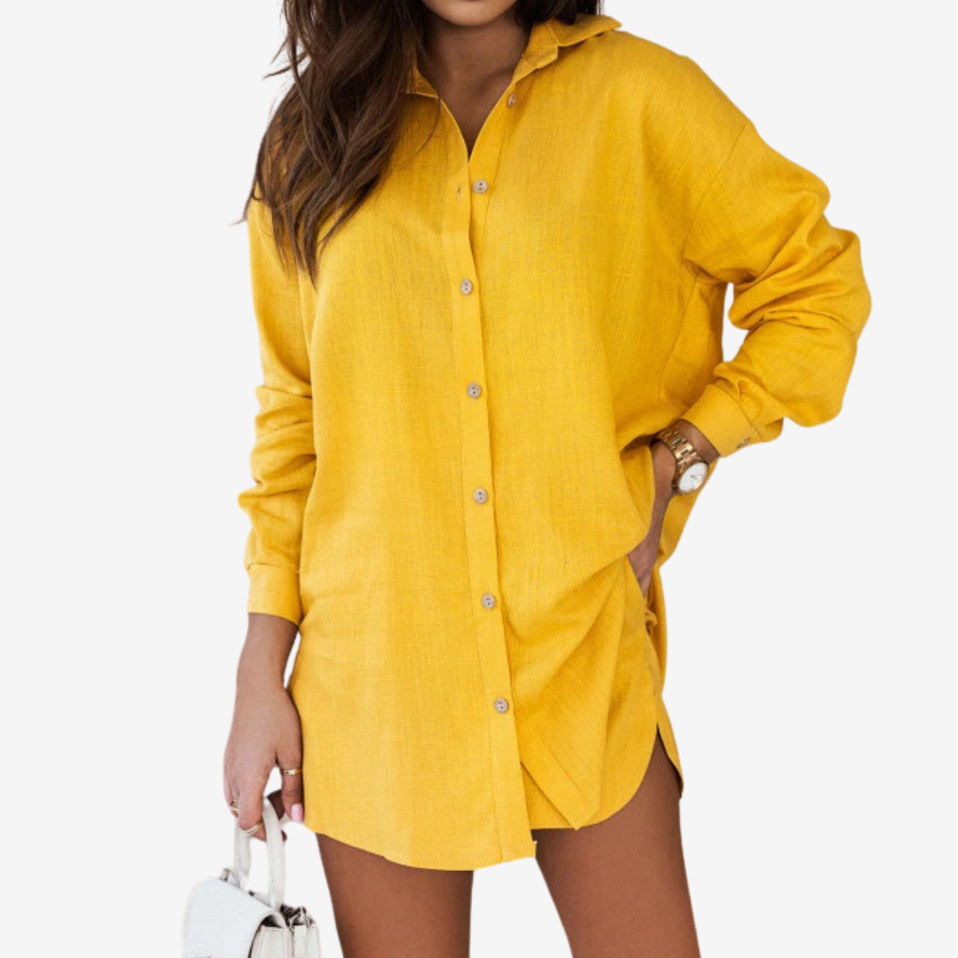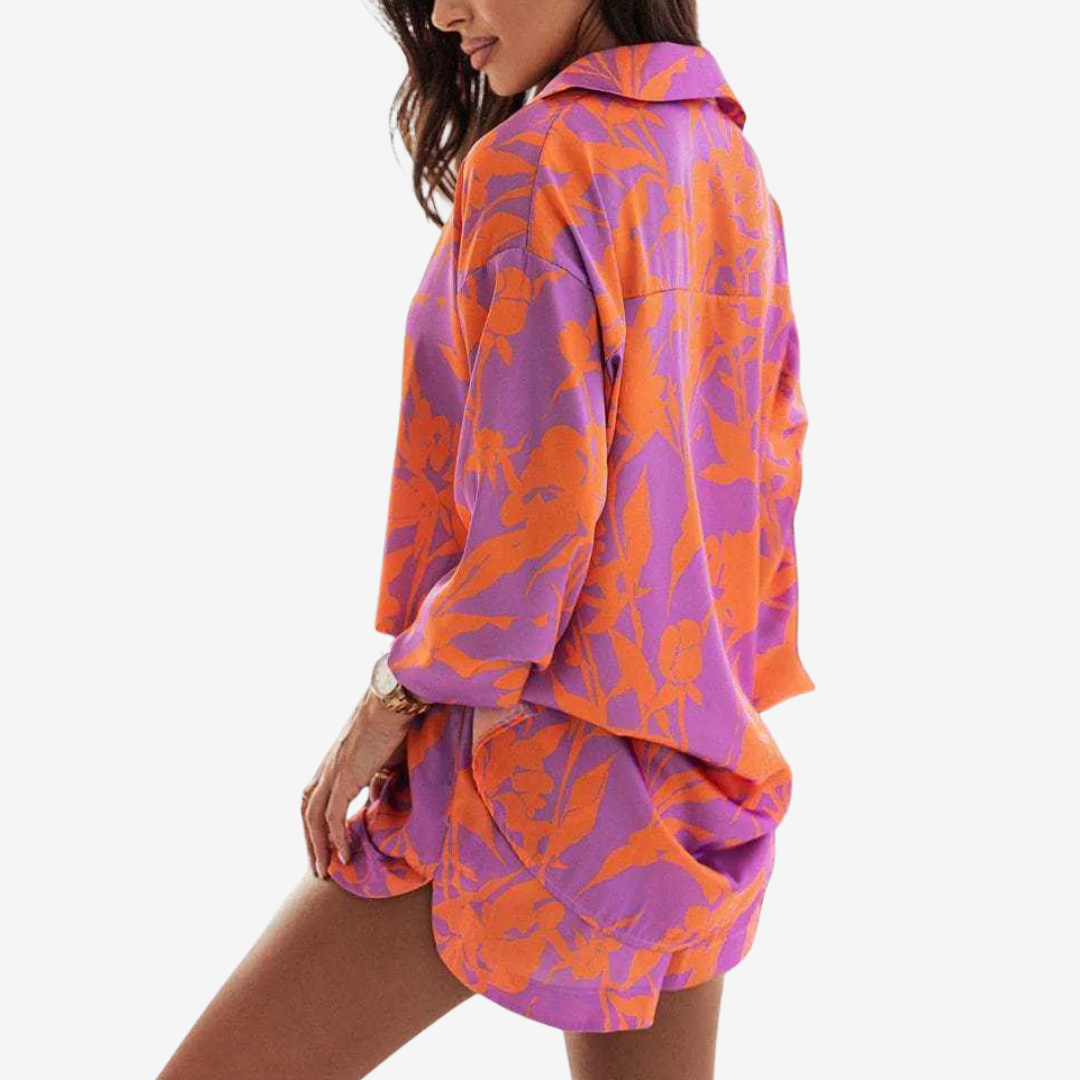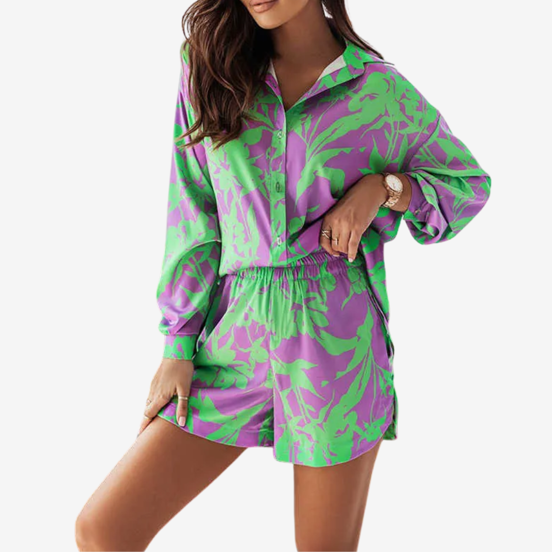 Il completo Beaira™ è il perfetto connubio tra comfort e stile vivace, perfetto per le giornate di sole e i look casual chic. Composto da una camicia dalla vestibilità comoda con un colletto aderente e pantaloncini coordinati, è realizzato in tessuto leggero e traspirante che ti mantiene fresca aggiungendo un tocco di colore al tuo guardaroba. Con le sue fantasie audaci e il design versatile, Beaira™ si adatta perfettamente alle passeggiate in spiaggia e alle uscite in città. Abbinalo a sandali per un look casual o arricchiscilo con zeppe e accessori per un look giocoso e alla moda.