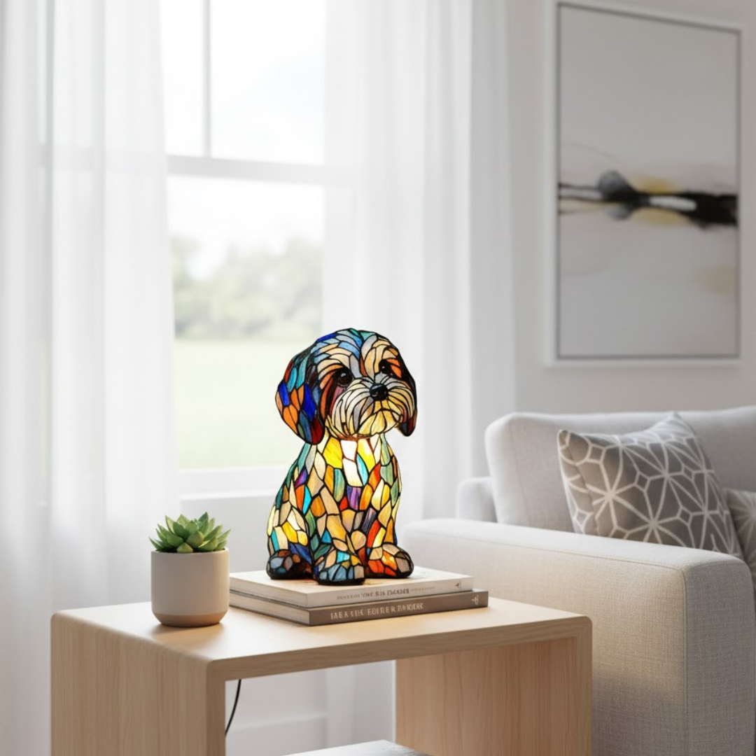 Alba is a charming glass chihuahua sculpture, handcrafted in a radiant stained-glass mosaic style. The vibrant colors and delicate detailing bring this little companion to life, while the warm glow from the glass adds a touch of artistry and warmth to any space. With its expressive eyes and petite stance, Alba is the perfect blend of elegance, craftsmanship, and playful spirit, making it a standout piece in your collection or home décor.