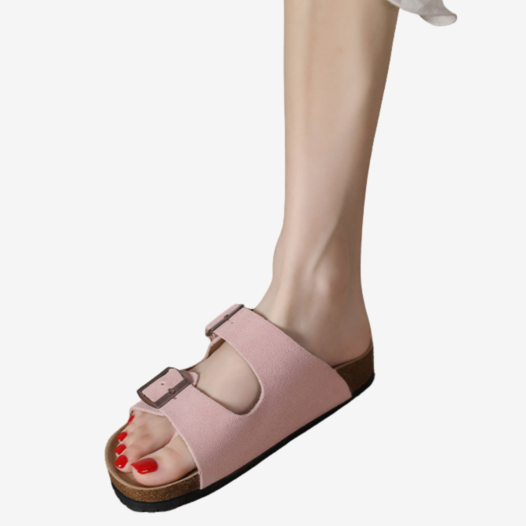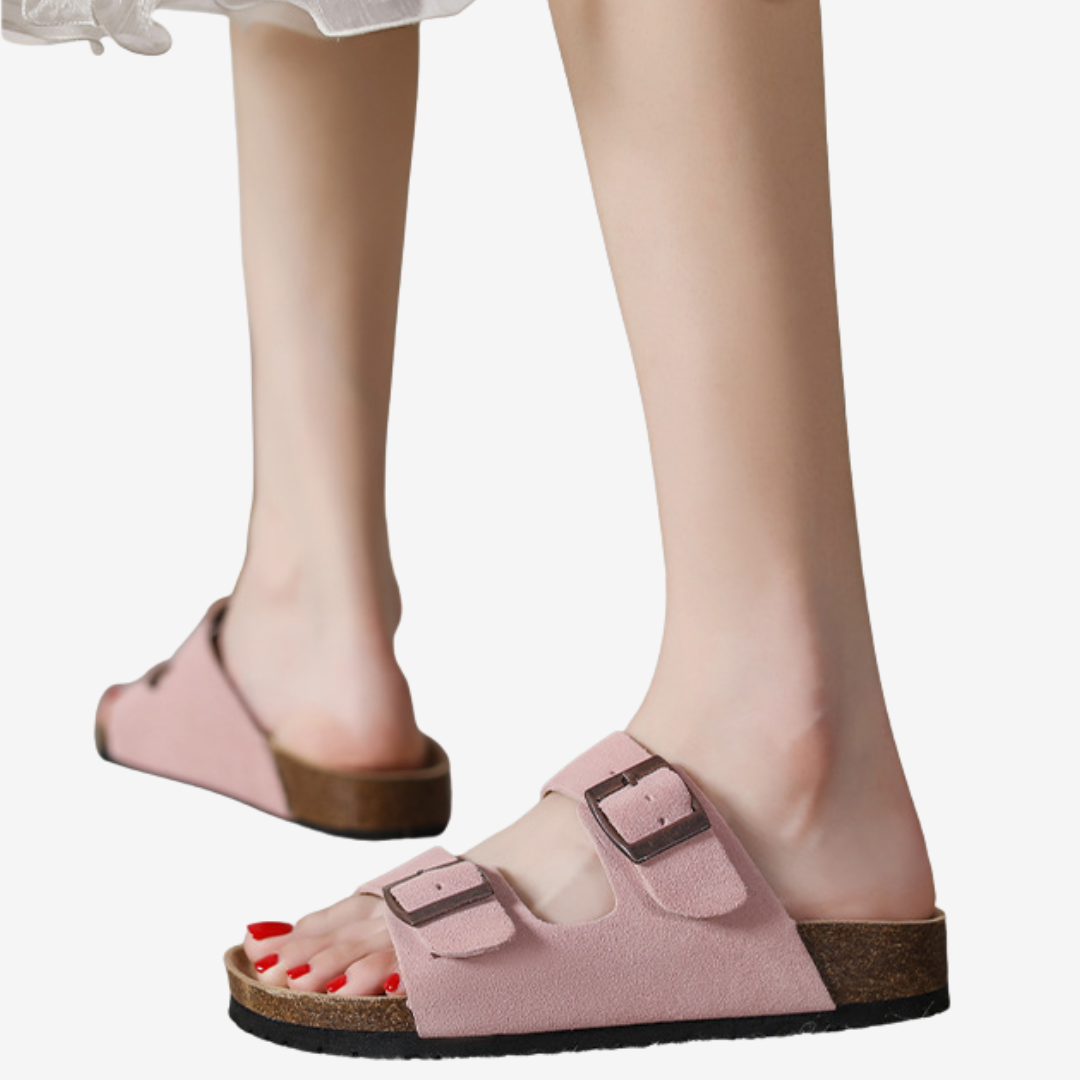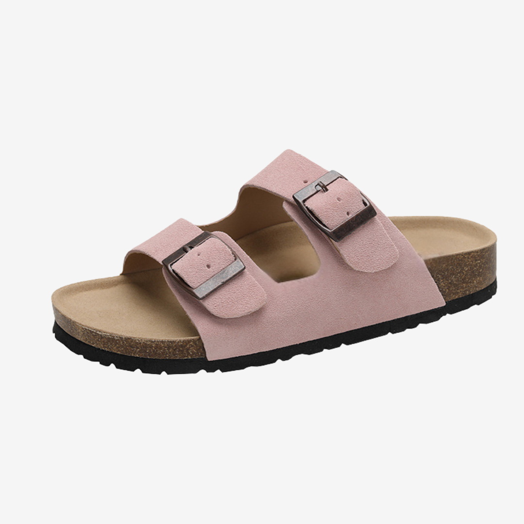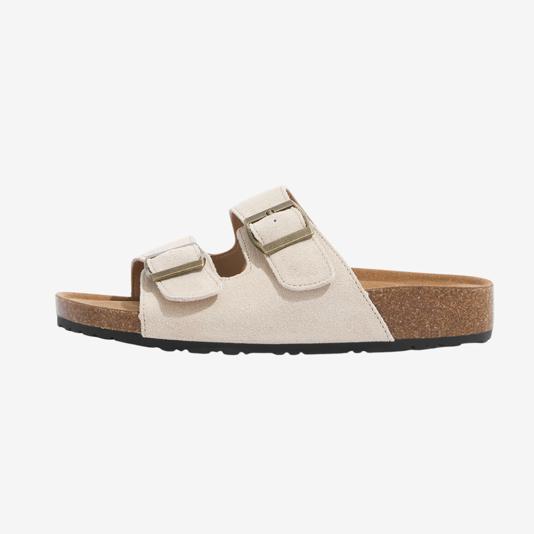 Meet Lissandra™, the chicest slide sandals to add an effortless touch of French flair to any outfit. Crafted from soft, supple leather with a gently contoured footbed and comfortable cork sole, these lightweight sandals are perfect for all-day wear. Featuring two adjustable buckle straps and subtle metallic accents, Lissandra™ combines refined style with walk-on-cloud comfort. Ideal for everything from garden parties to café strolls, and perfect for tanned feet or your favorite summer dress.