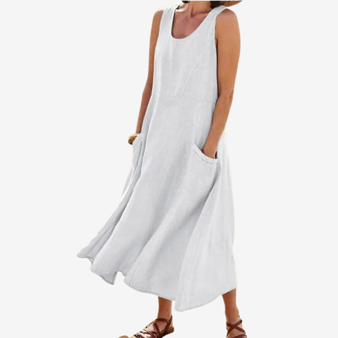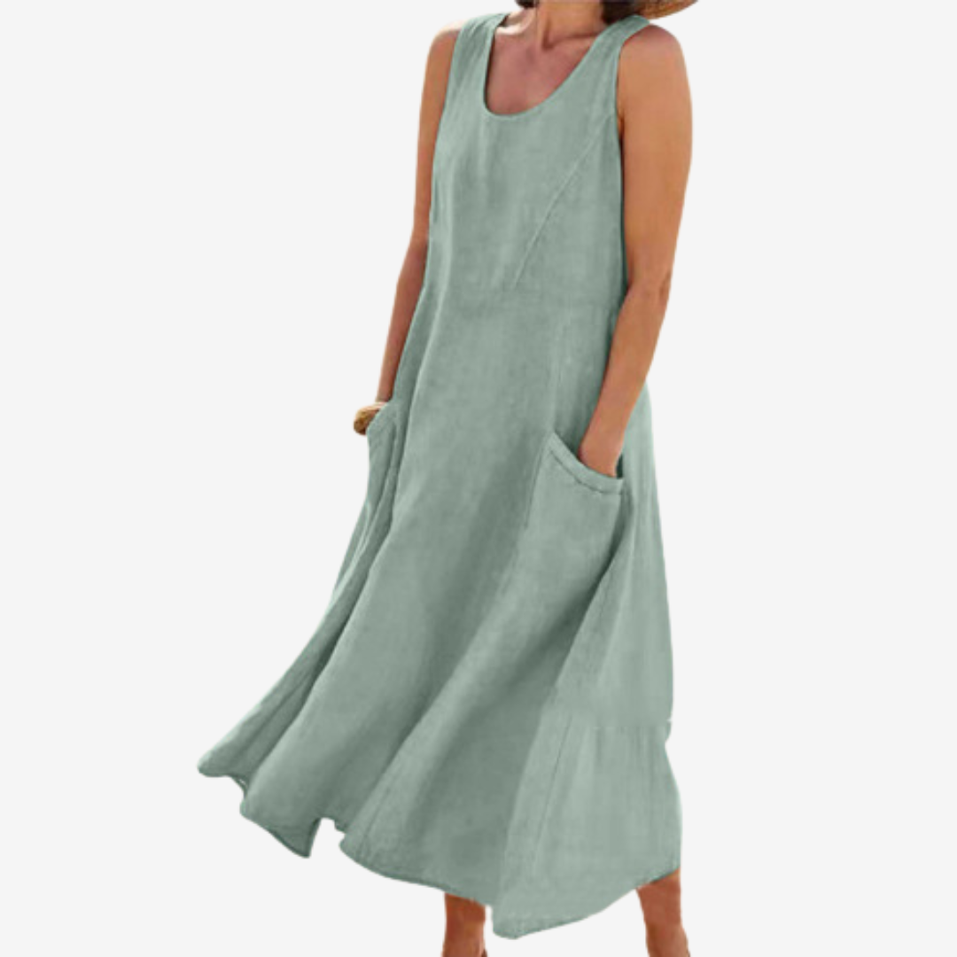 Embrace effortless elegance with Lysiane™, the flowy sleeveless maxi dress designed for comfort and timeless style. Its wide, A-line cut and lightweight fabric create a graceful drape that moves beautifully with every step, while the deep side pockets add both charm and practicality. Perfect for warm days, seaside strolls, or relaxed evenings.
