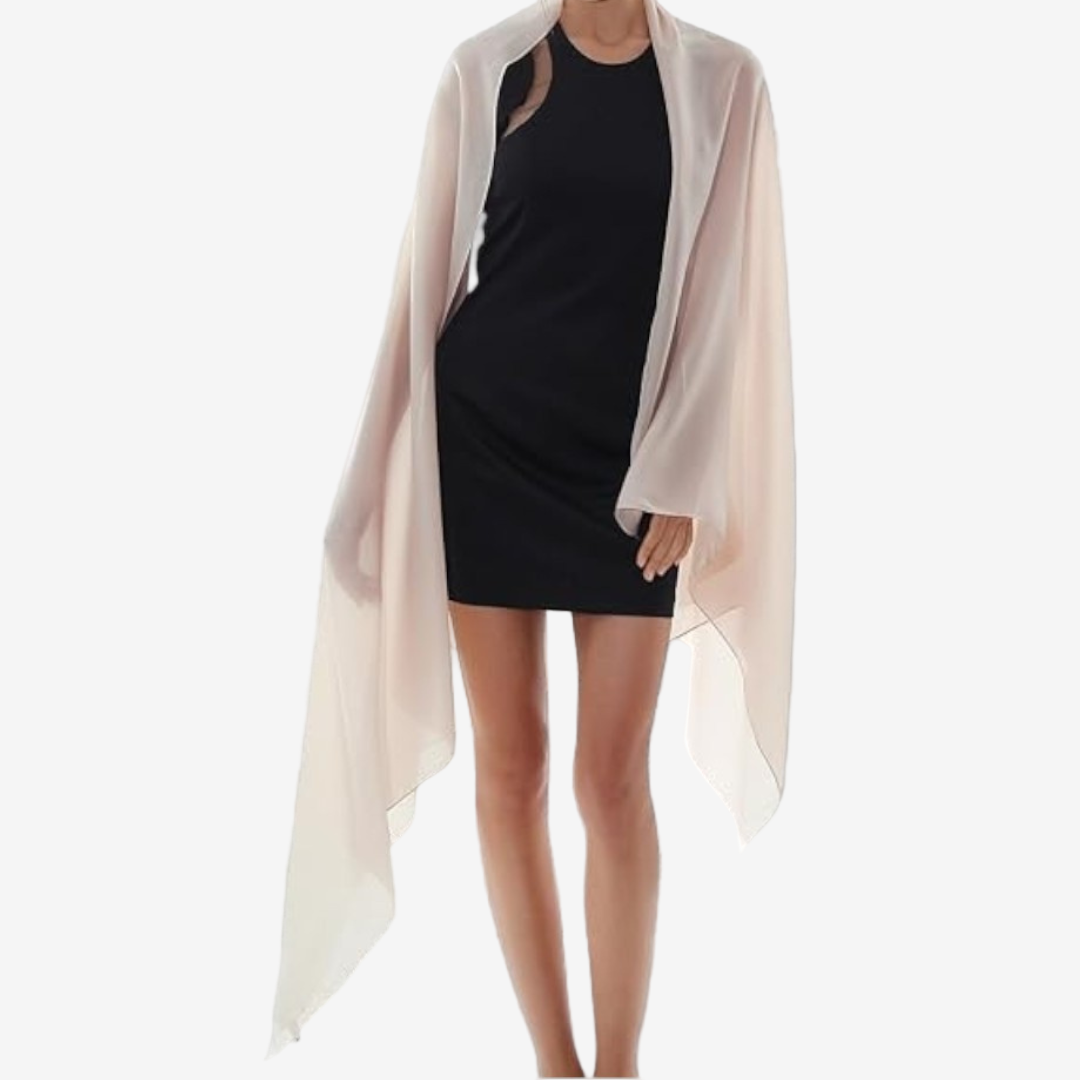Lo scialle Brigitte™ è il tocco finale perfetto per qualsiasi outfit elegante. Realizzato in velo leggero e trasparente, si drappeggia elegantemente sulle spalle e si annoda con eleganza sul davanti o sul retro. Misura 200 x 68 cm e offre una copertura generosa, perfetta per matrimoni, serate di gala o serate formali.