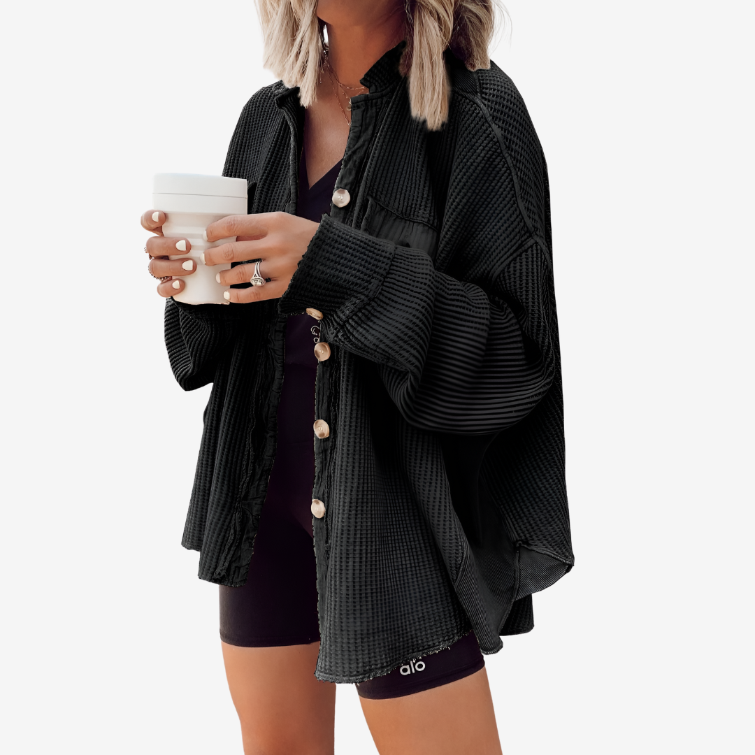 Claudine™ è il perfetto connubio tra comfort e stile disinvolto. Realizzata in un morbido tessuto a coste, questa camicia oversize dona un tocco casual ma chic ai tuoi look quotidiani. Indossata aperta sopra una canotta o abbottonata come capo di tendenza, è versatile, comoda e moderna allo stesso tempo.