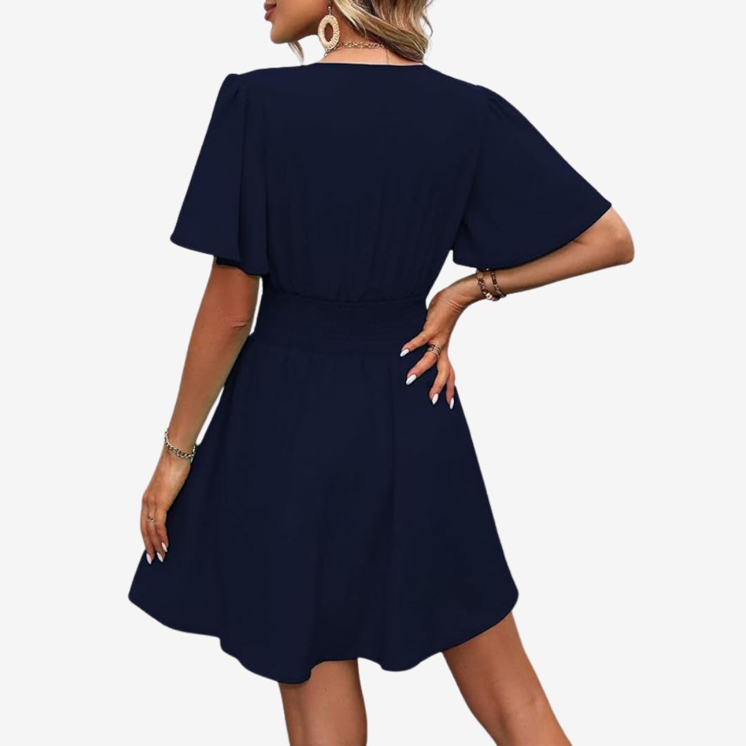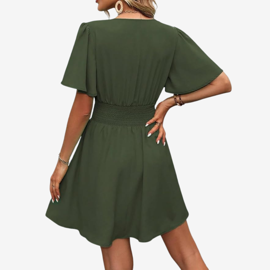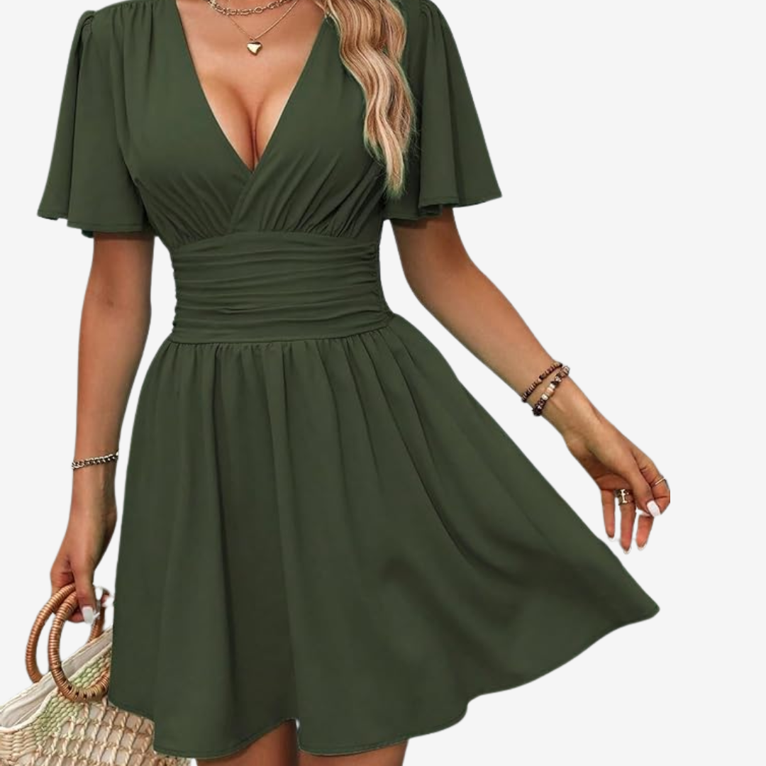 Vi presentiamo Éviana™, un abito a tubino chic e civettuolo, perfetto sia per le serate estive che per le uscite informali. Progettato con romantiche maniche a lanterna e un giocoso scollo a V, questo abito si stringe elegantemente in vita prima di sfociare in una gonna morbidamente plissettata. Disponibile in una collezione di ricche tonalità gioiello e delicate stampe floreali, Éviana™ incarna un'eleganza disinvolta e una versatilità adatta sia al giorno che alla sera. Abbinatelo a sandali per un brunch informale o impreziositelo con gioielli vistosi e tacchi alti per un appuntamento serale.