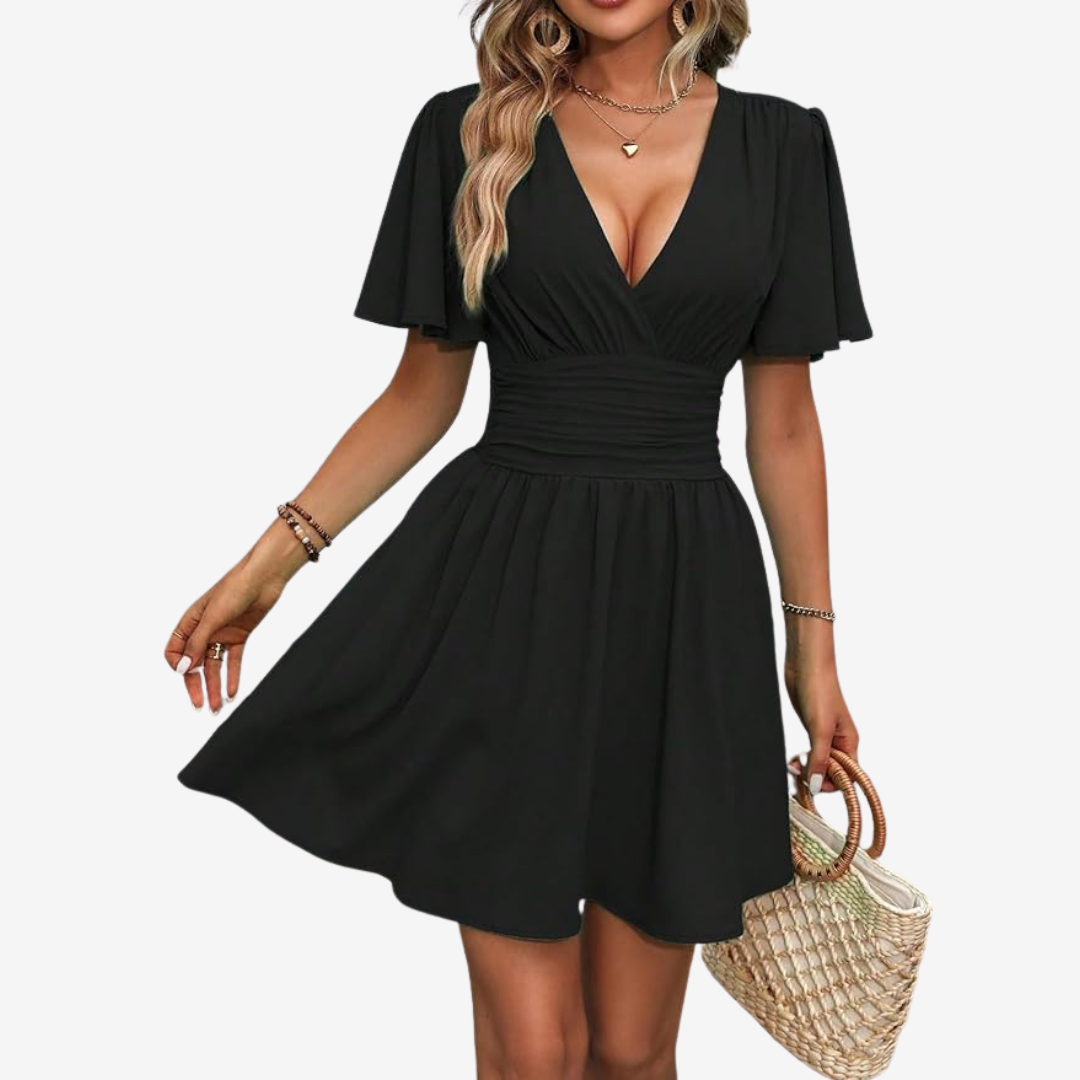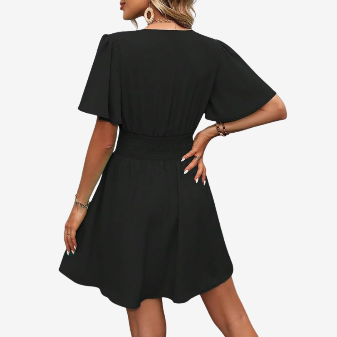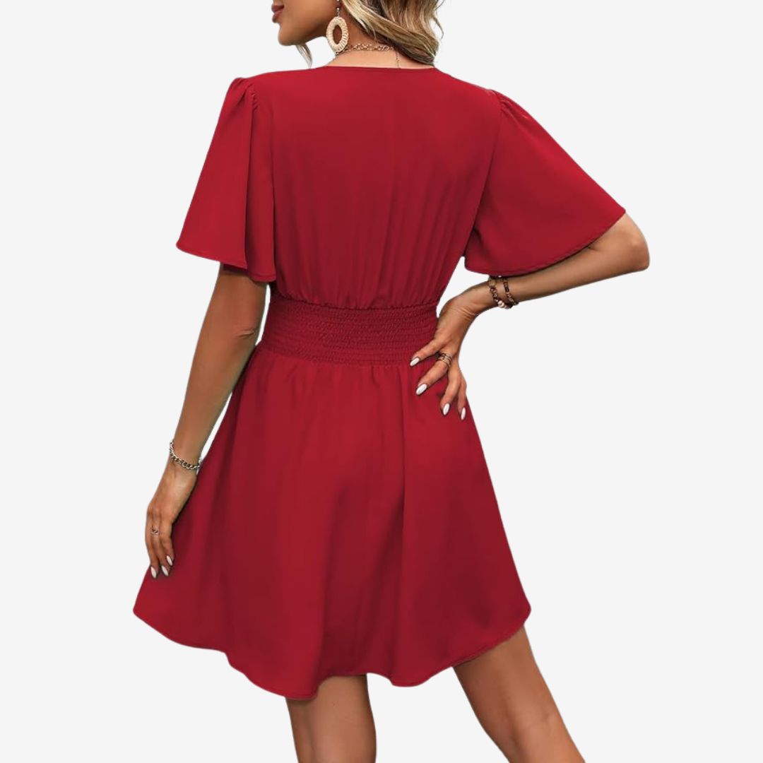 Vi presentiamo Éviana™, un abito a tubino chic e civettuolo, perfetto sia per le serate estive che per le uscite informali. Progettato con romantiche maniche a lanterna e un giocoso scollo a V, questo abito si stringe elegantemente in vita prima di sfociare in una gonna morbidamente plissettata. Disponibile in una collezione di ricche tonalità gioiello e delicate stampe floreali, Éviana™ incarna un'eleganza disinvolta e una versatilità adatta sia al giorno che alla sera. Abbinatelo a sandali per un brunch informale o impreziositelo con gioielli vistosi e tacchi alti per un appuntamento serale.